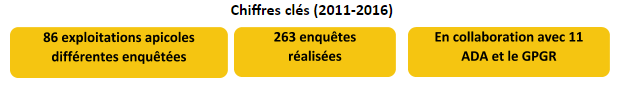 Coordonné par l’ITSAP, il s’appuie sur les Associations régionales de Développement de l’Apiculture (ADA) et sur le Groupement des Producteurs de Gelée Royale (GPGR) qui réalisent chaque année des enquêtes chez des apiculteurs professionnels, dont les exploitations sont en « rythme de croisière ».